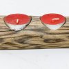 Wooden candelabra for two candles, authentic local handicraft. Height 4 cm, width 12 x 6 cm.