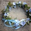 Delicate flower wreath on a christening table with seasonal flowers as on picture. Sizes: 20,30 and 40 cm ø.