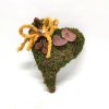Sammal sydänkranssi keltaisella rusetilla. Korkeus 24 cm, leveys 20 cm ja paksuus 5,5 cm.